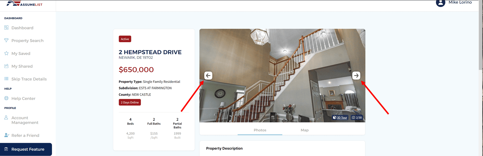 Assumelist's smart user interface makes it easy for users to view additional photos. You can view all the photos of a property in three ways: