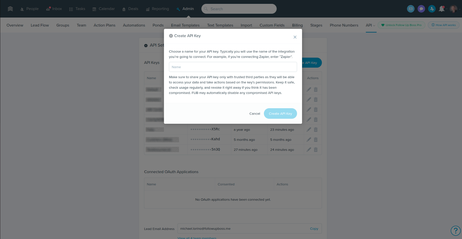 Step 3: Generate Your FUB API Key