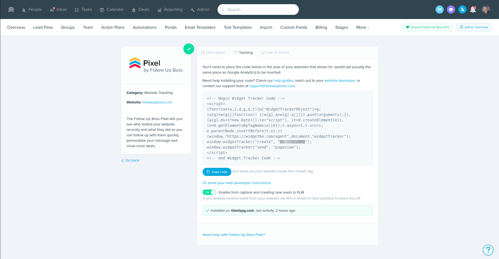 Step 5: Copy the Pixel Code from FUB